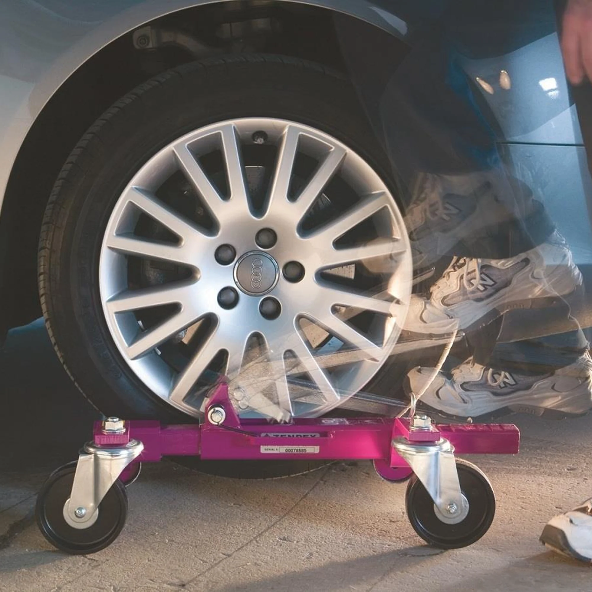 The Go-Jak 4500 Wheel Dollies are the best solution for easily moving vehicles, especially within confined spaces. It gently lifts vehicles off the ground with a simple system. The pumped foot pedal gradually “squeezes” the tyre between the rollers until the vehicle lifts. It requires a fast setup time, which means vehicles can be moved within minutes. The low roll resistance nylon wheels allow just one person to effortlessly manoeuvre a vehicle without marking workshop floors. During use, there is no contact with the vehicles frame, undercarriage or body as the rollers only touch the tyre. The mechanical design provides no need for electric power, compressed air or leaky hydraulics.