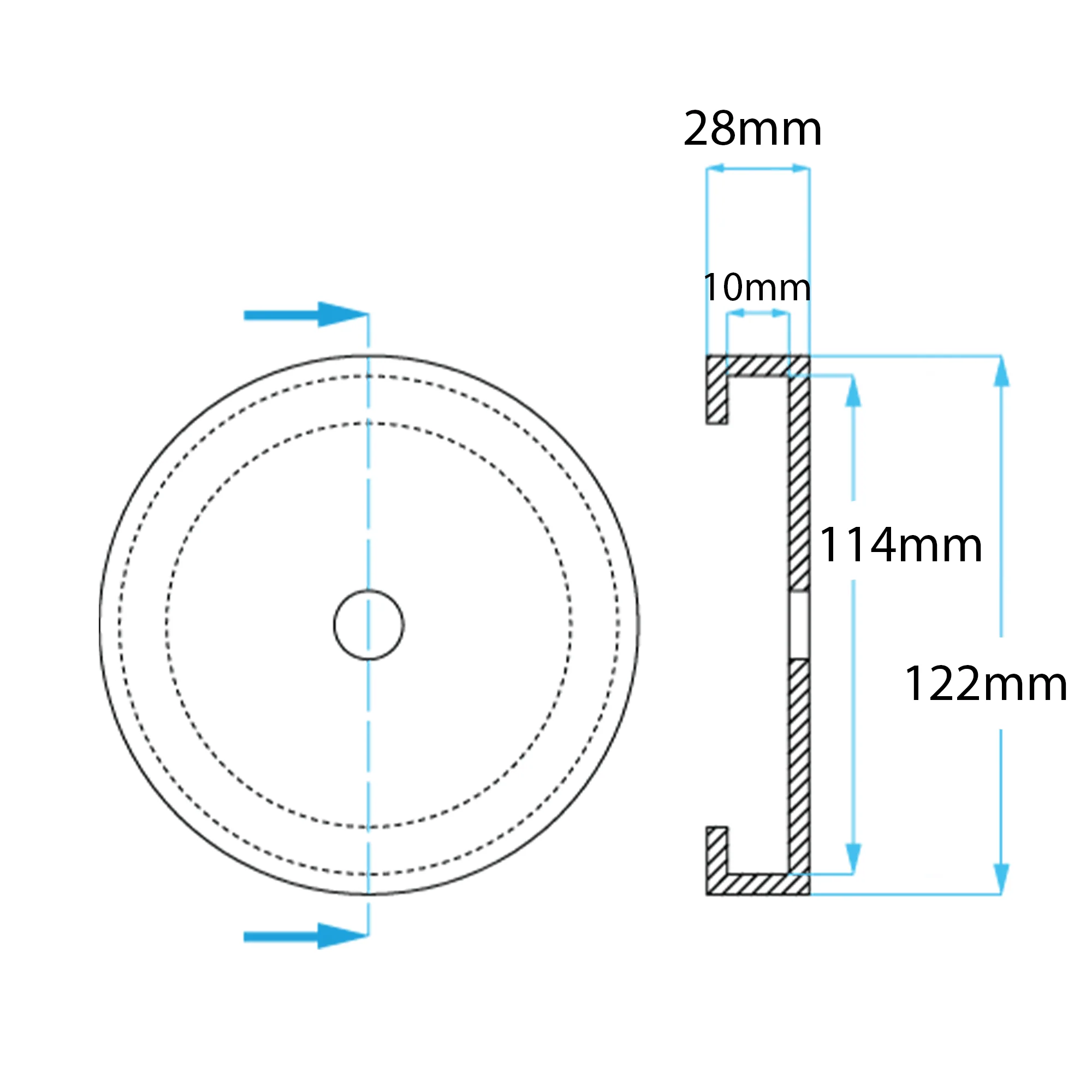 - Outer diameter - 122mm